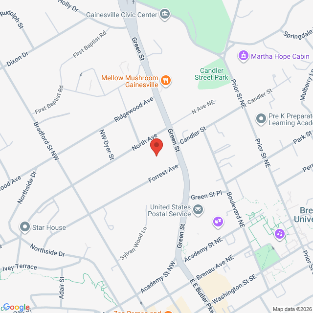 Located at 142 Forrest Avenue, Gainesville- just off Green Street
